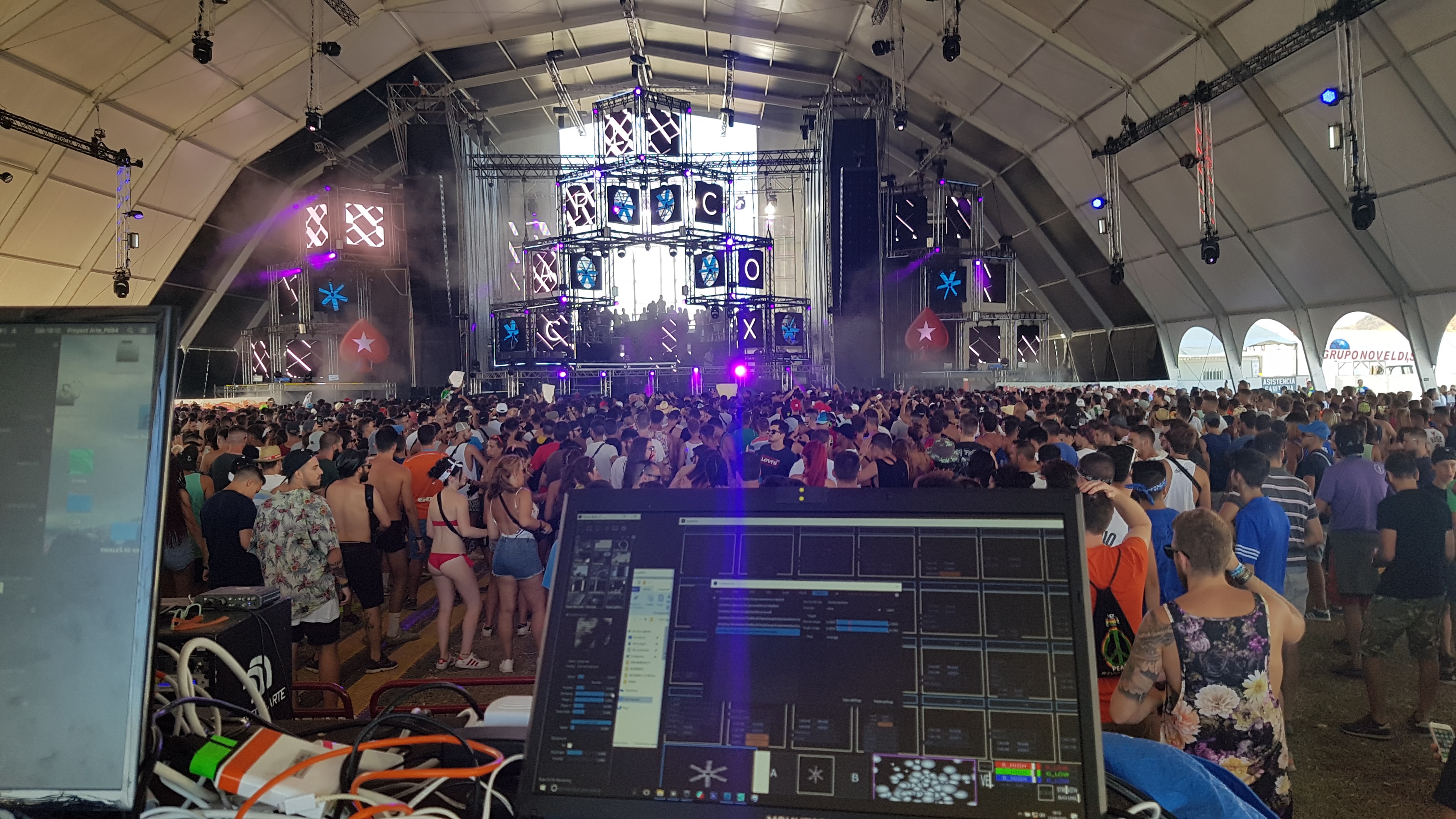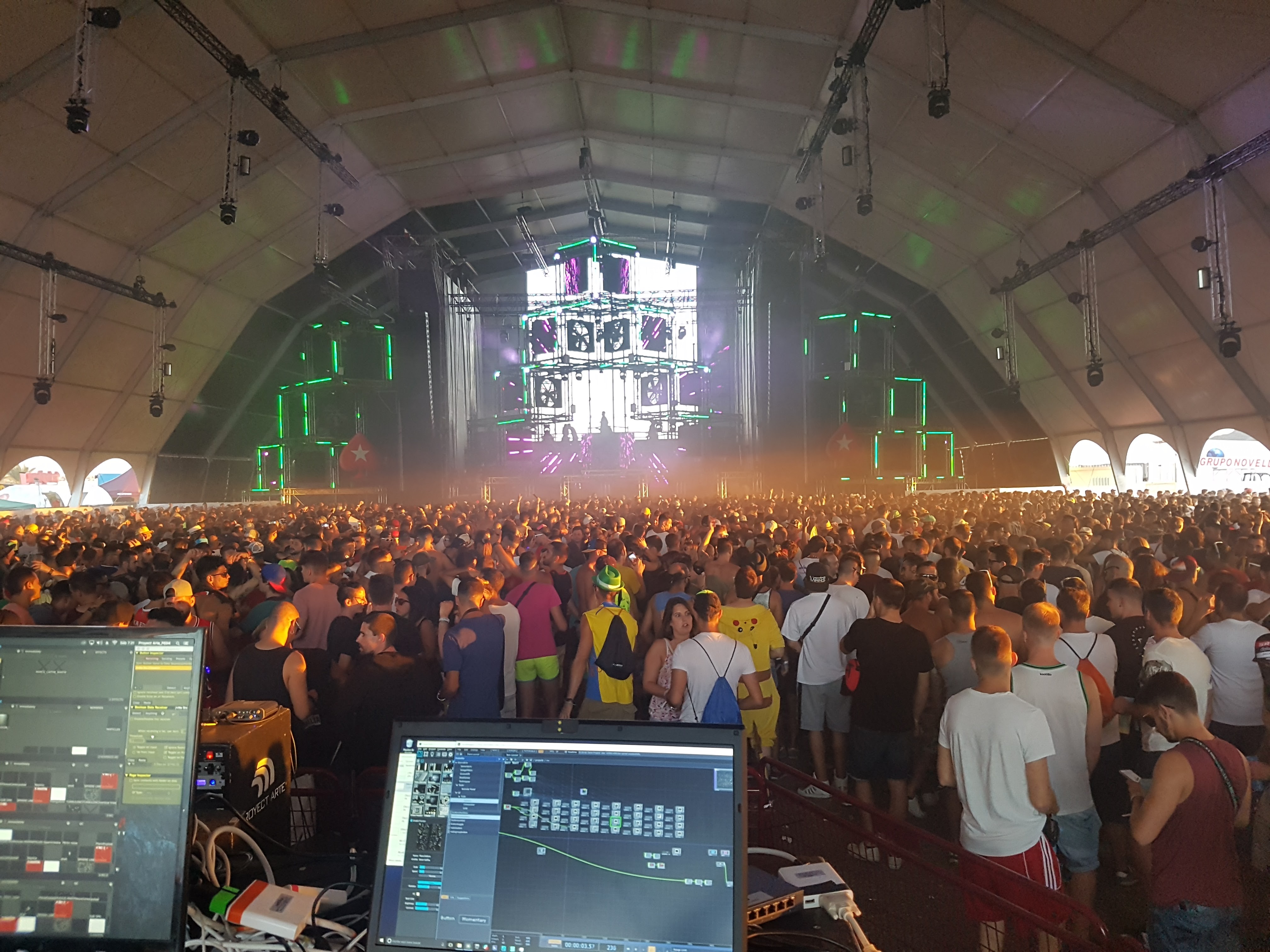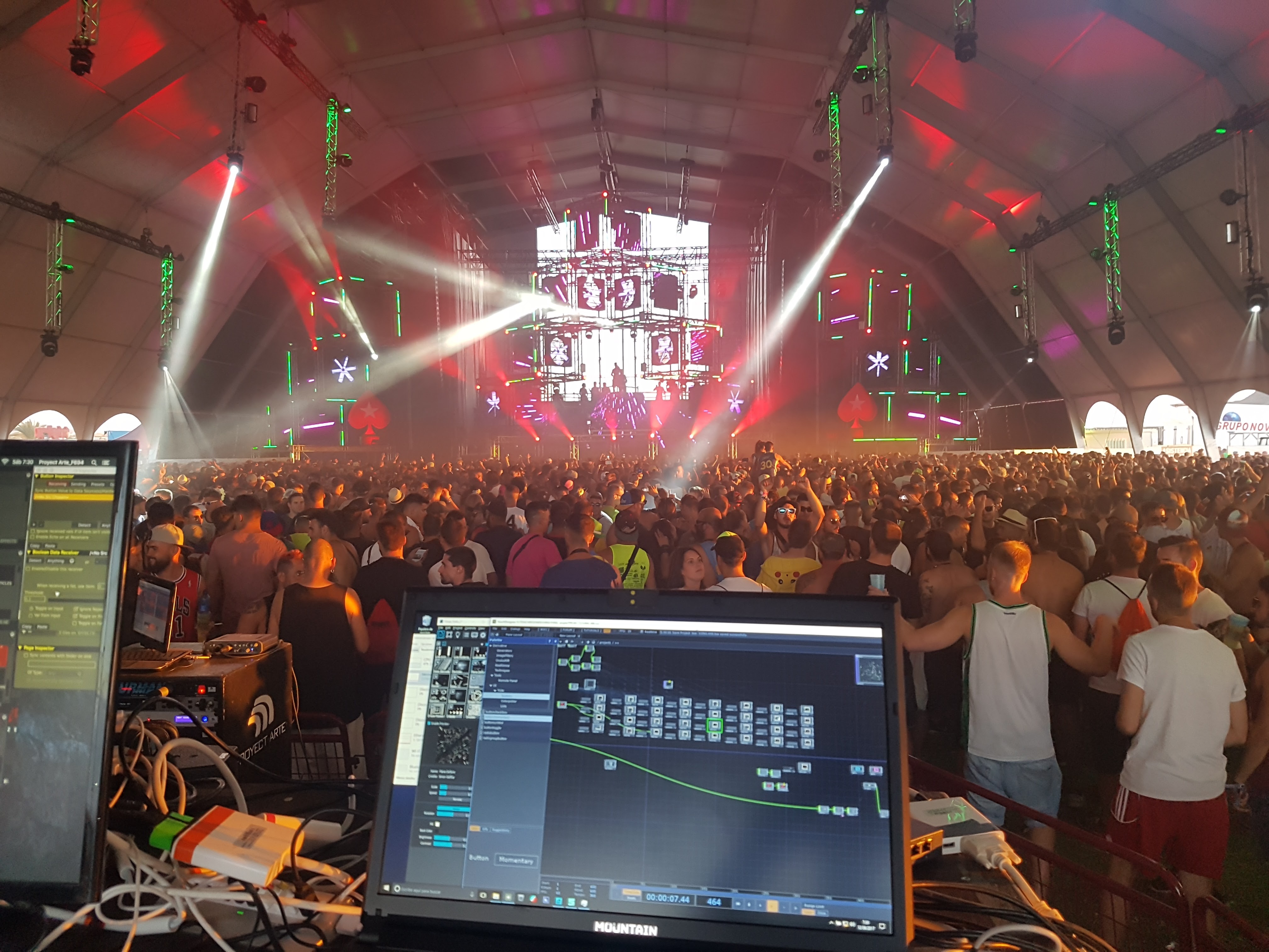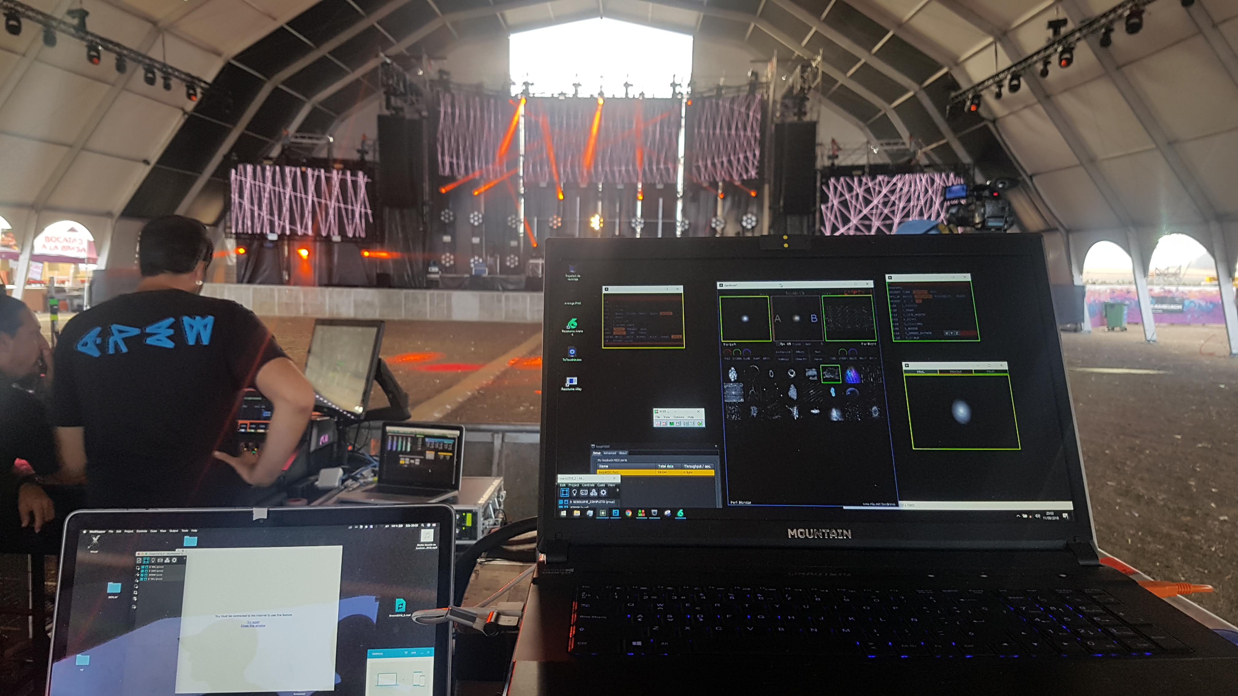 El control de las barras de LED fue a través de la herramienta MadLight + MadLine de MadMapper (brutal, fácil y para todos los públicos. Gran herramienta audiovisual aconsejada)