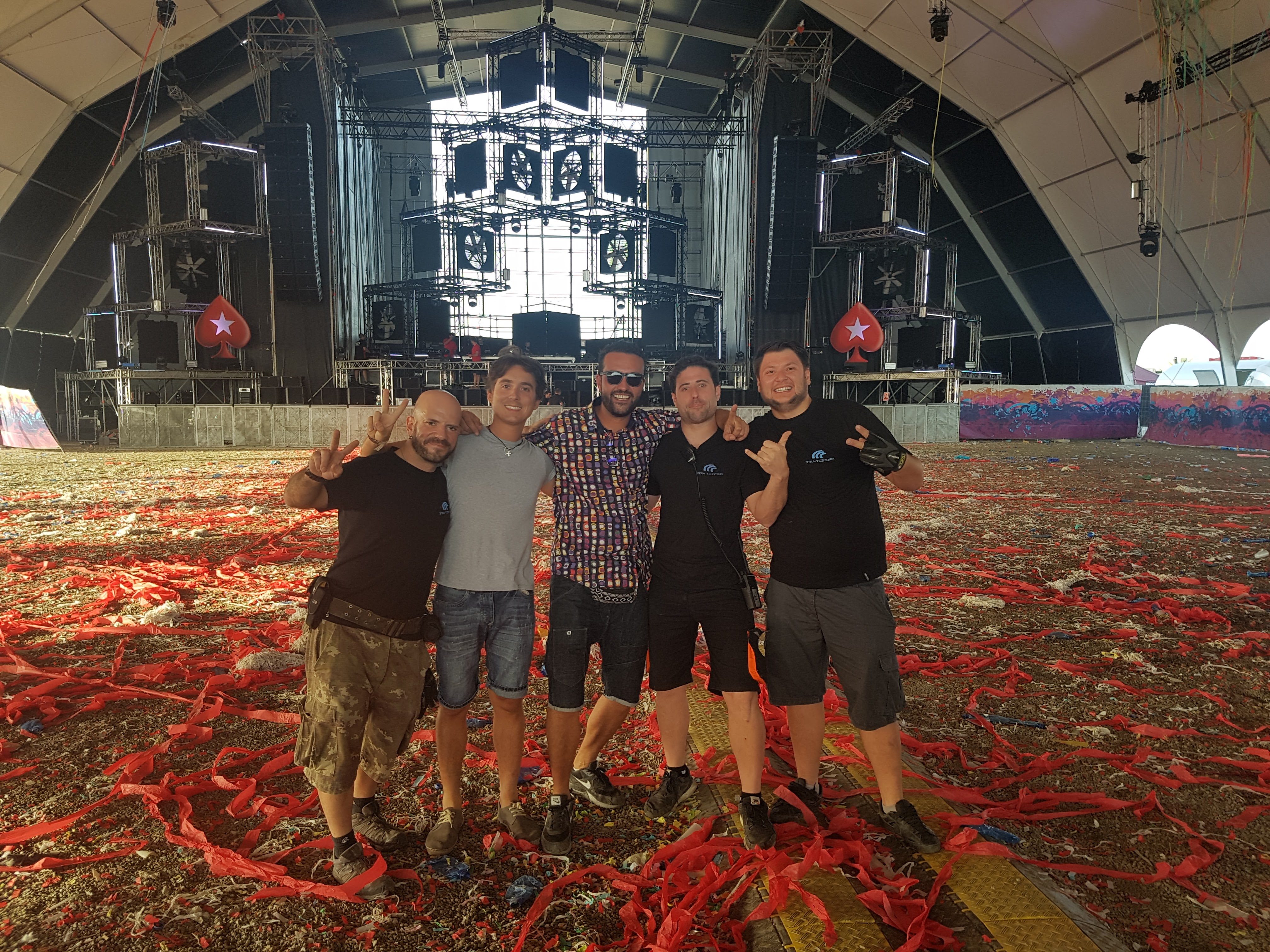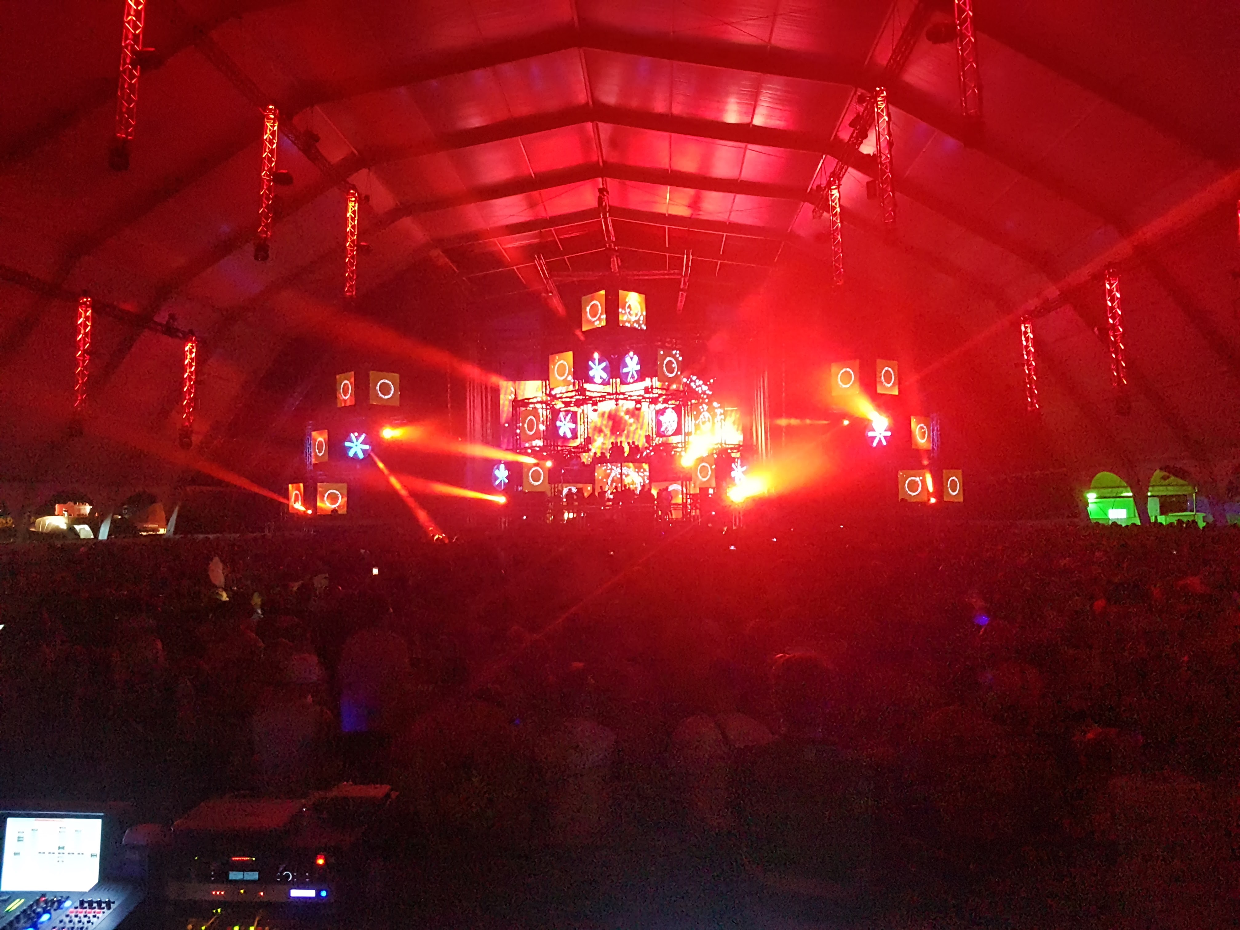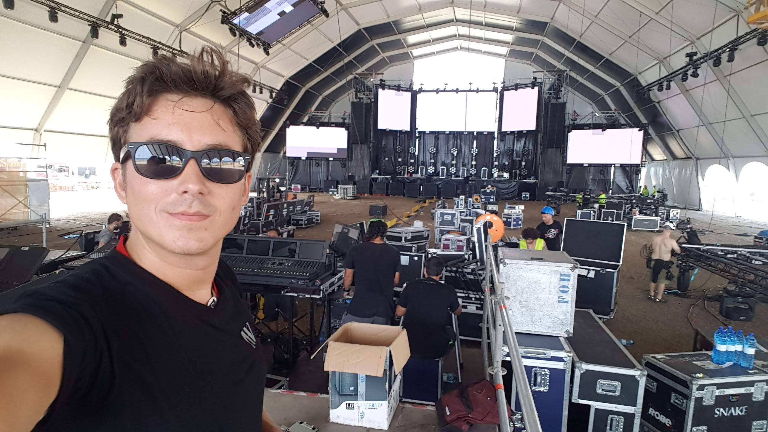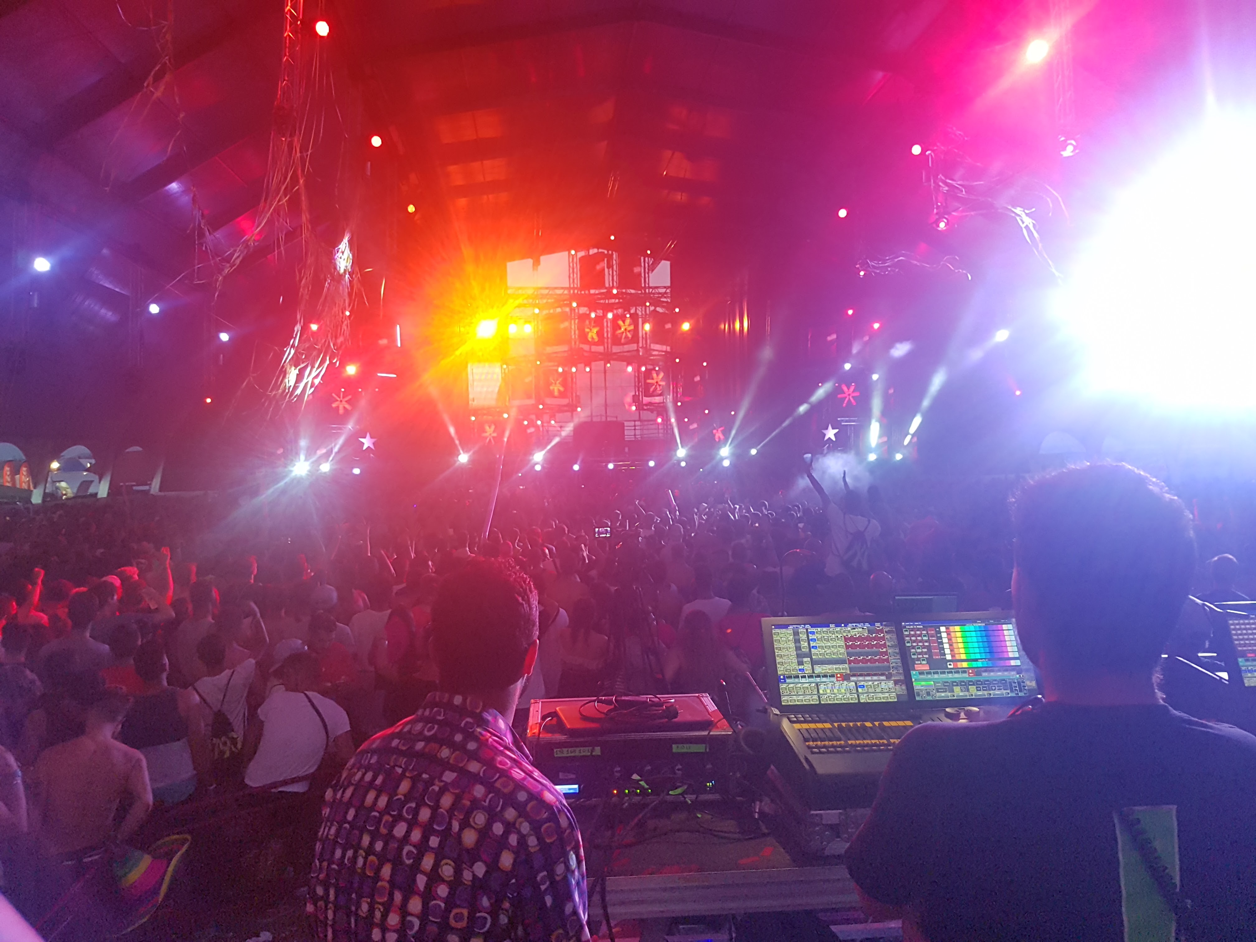 En el FOH compartí estos momentos con Pablo Zamora (operador de iluminación), y los chicos de Pirolaser creando unos shows impresionantes con el láser (en el vídeo se puede ver perfectamente)